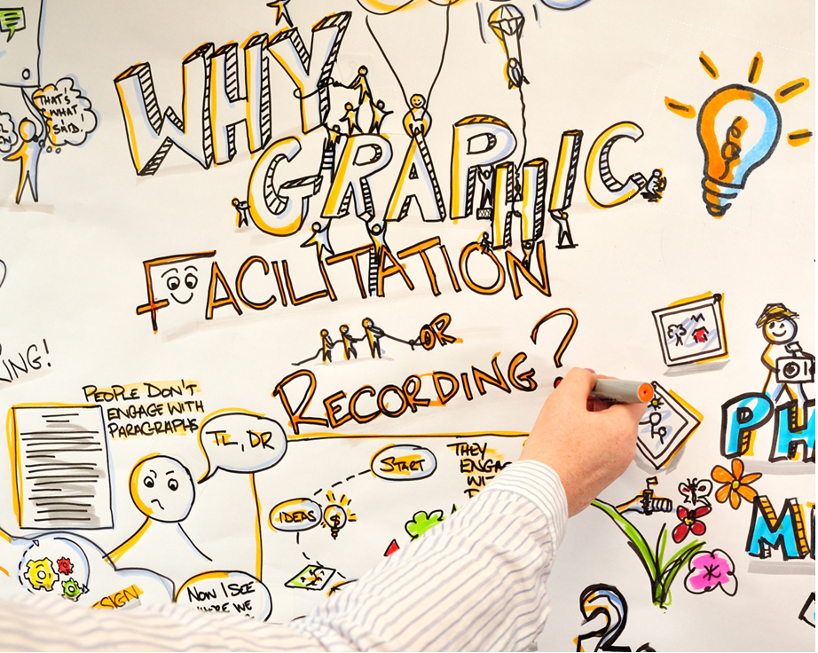 Live illustration, large-scale visuals, and materials that turn complex conversations into shared understanding.